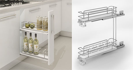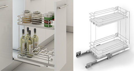 Solid base pull – out basket with full extension slides.
