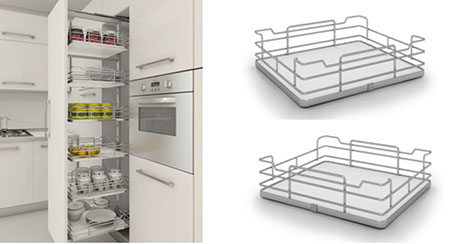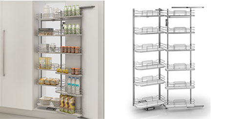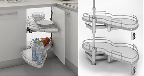 Pull out shelves for corner cabinet.