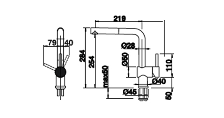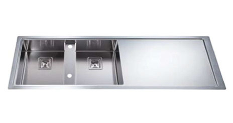 Sinks with retractable tap perfectly suitable for every kind of worktop, and the sliding stainless steel/polyethylene chopping boards entirely cover the washing area.